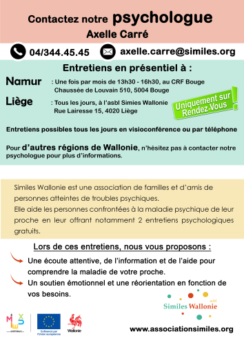 Ce jeudi 16 avril il reste des places pour la permanence psy à Namur